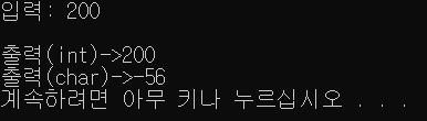 printf("출력(char)->%d\n", tmp);