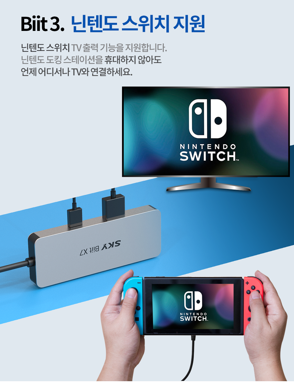 닌텐도 스위치와 허브를 연결한 모습입니다.