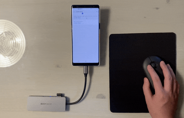 하단 이미지는 갤럭시 노트 8을 허브와 연결 후