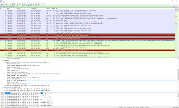 >> DNS response message는 3개의 answers를 제공. Answers엔 조회된 웹사이트 주소 및 타입, class, TTL, data length와 IP address가 포함되어 있음.
