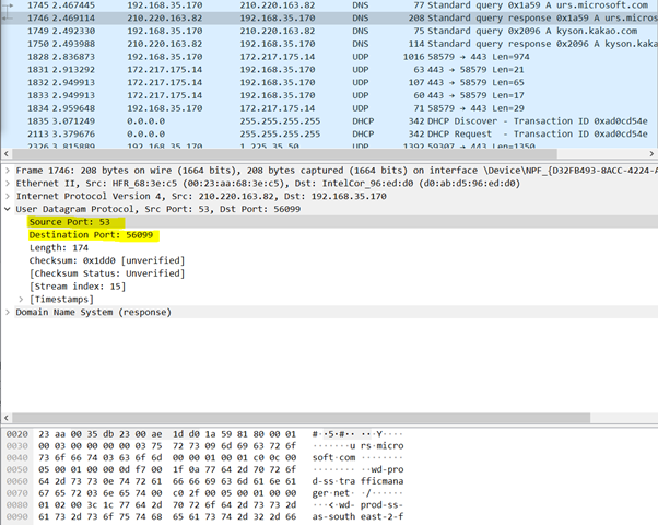 >> Send message의 Source port가 Receive message의 Destination port다.