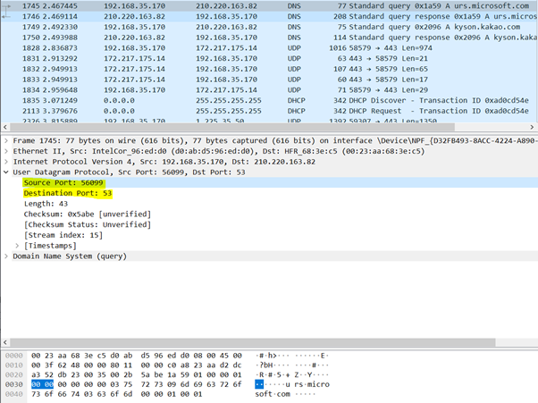 >> Length field의 값은 8개의 header Byte와 packet에 캡슐화 된 나머지 data Byte의 합이다.
