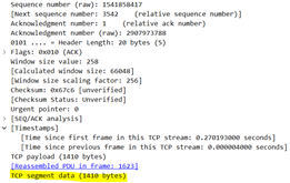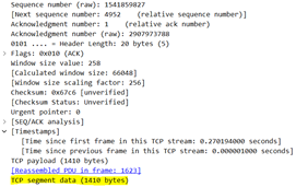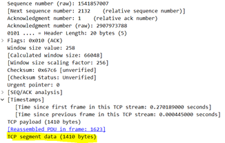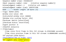 >> 2번째 TCP segment의 길이는 1410 bytes다.