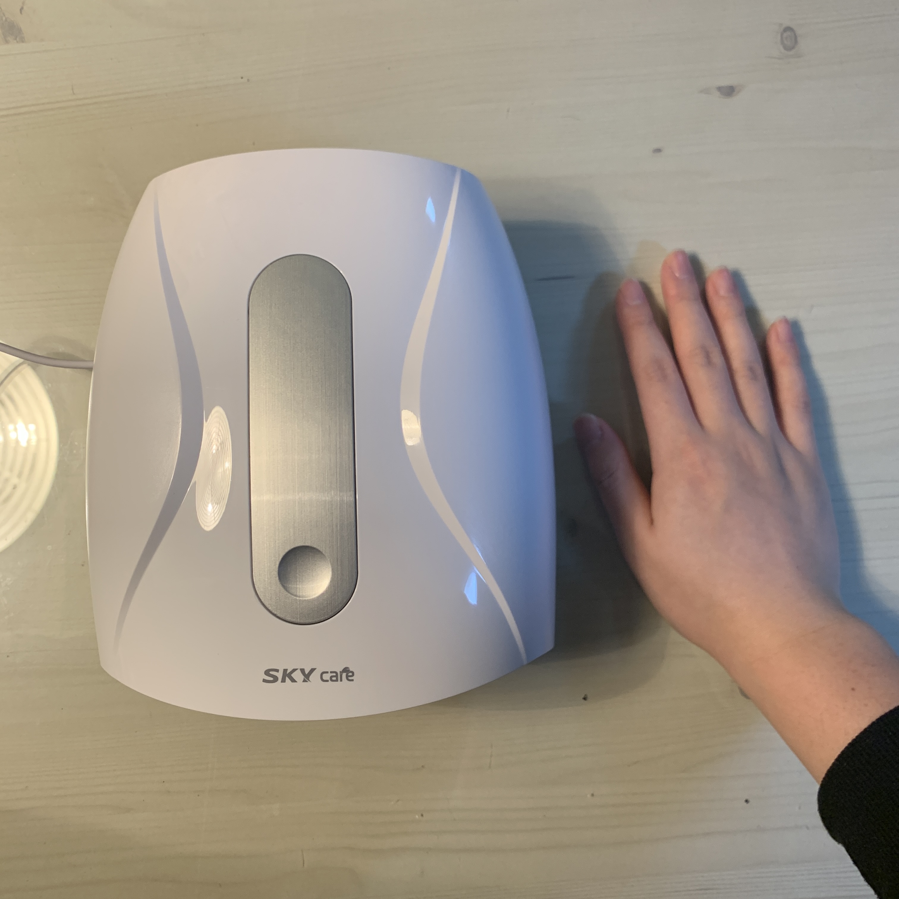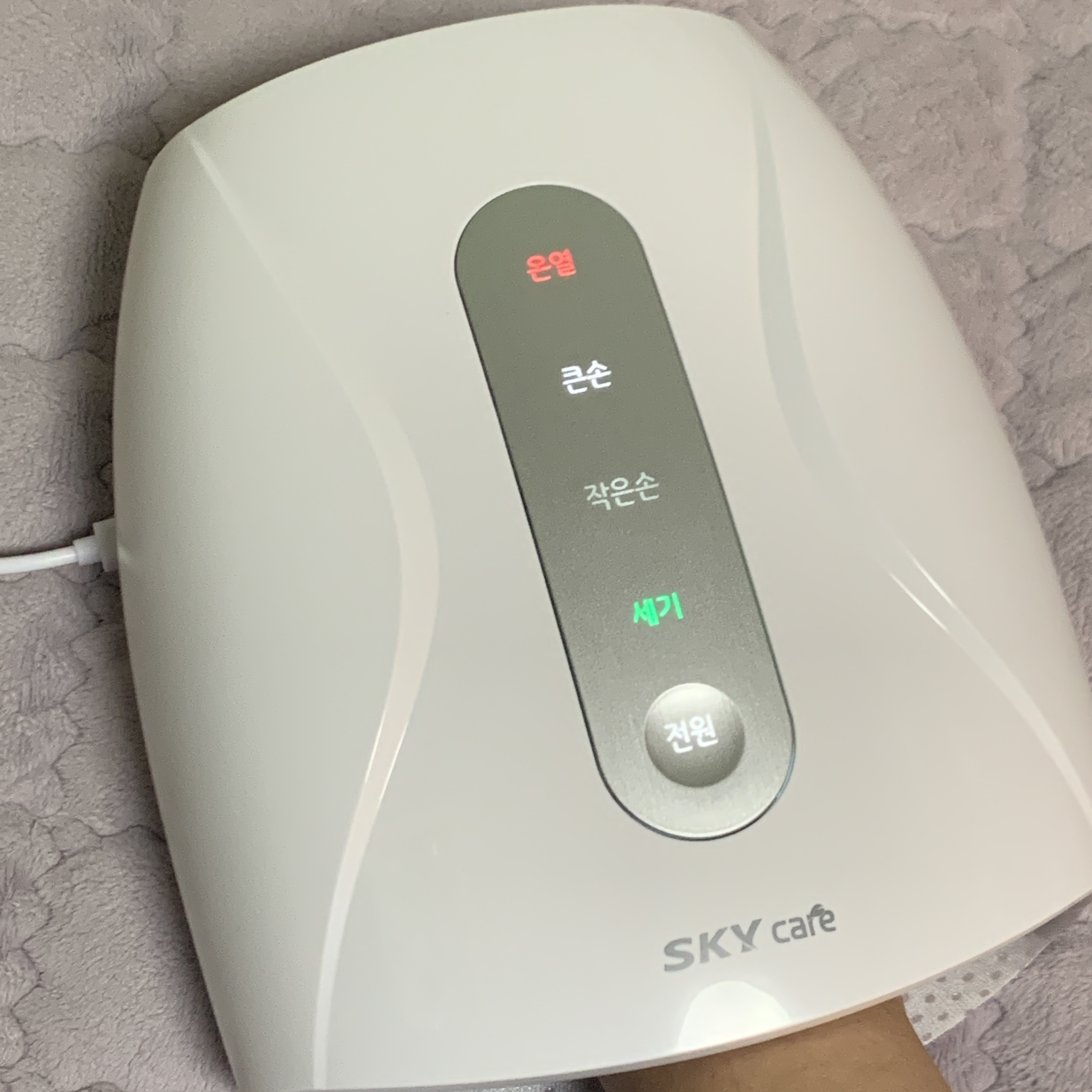 사용 후 손을 보니 자극된 때로 자국이 남아있었습니다. 아프지 않고 시원했는데 자국이 남아 신기했어요. 세기와 온열조절이 되는 것과 손목까지도 넓게 마사지가 가능하다는 점이 정말 큰 장점인 것 같습니다.