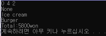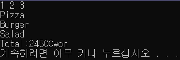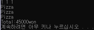 입력 받은 메뉴와 가격, 총금액을 출력하는 프로그램을 작성하시오.