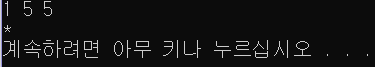 : 1, 5, 5가 입력되었다. 1 * 5 = 5 이므로 * 곱셈 기호 출력