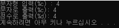 printf("문자형 입력(%%c) : ");
