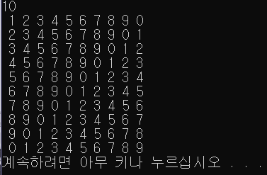 각 수 사이는 하나의 공백으로 구분, 맨 마지막에는 공백 없음.