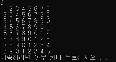 : [ 문제 6-3 ] 양의 정수 N을 입력받아, 아래와 같이 N줄을 출력하시오.
