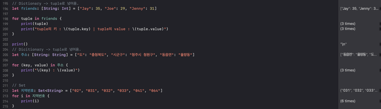 Dictionary는 넘겨받는 값의 타입이 Tuple로 넘어옴.