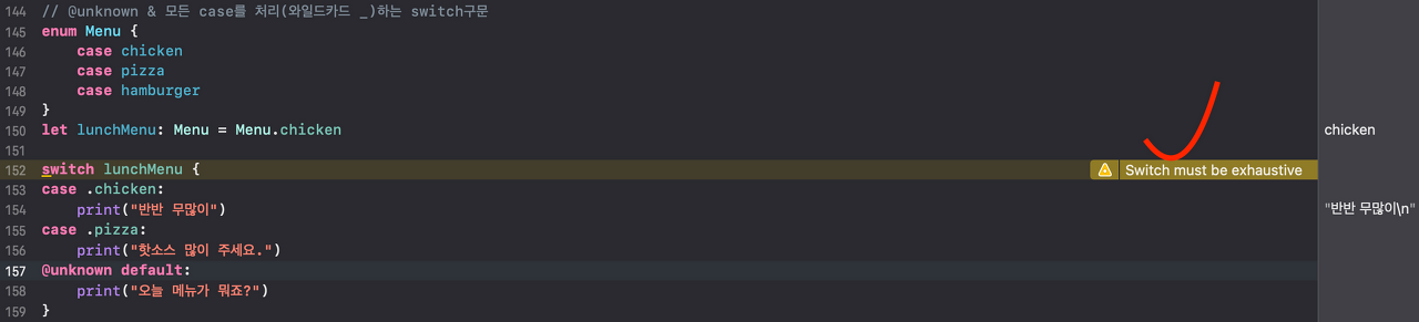 (@unknown : case를 처리하지 않으면 경고를 표시해줌.)