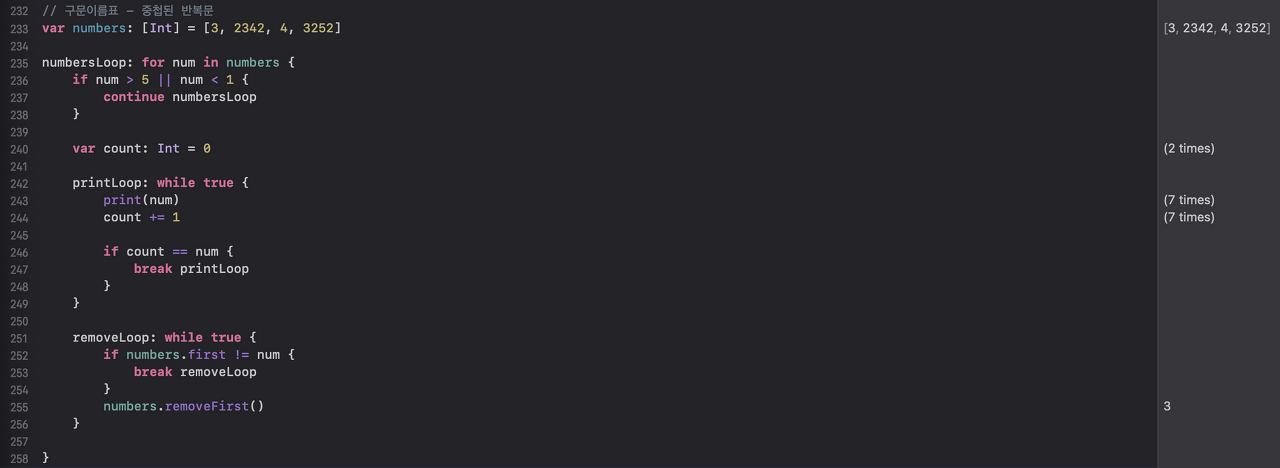 반복분 앞에 이름과 함께 콜론을 붙여 구문의 이름을 지정해주면 됨.