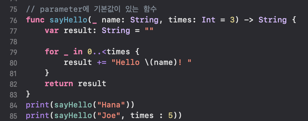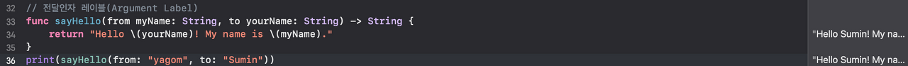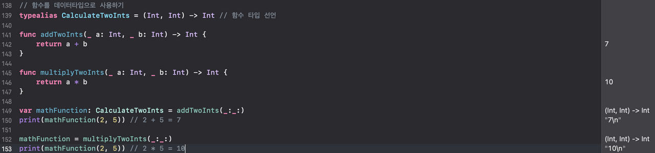 : typealias example = (String, String...) → String 이런식으로 나타냄.