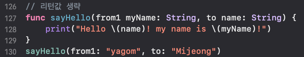 : typealias example = (String, String...) → String 이런식으로 나타냄.