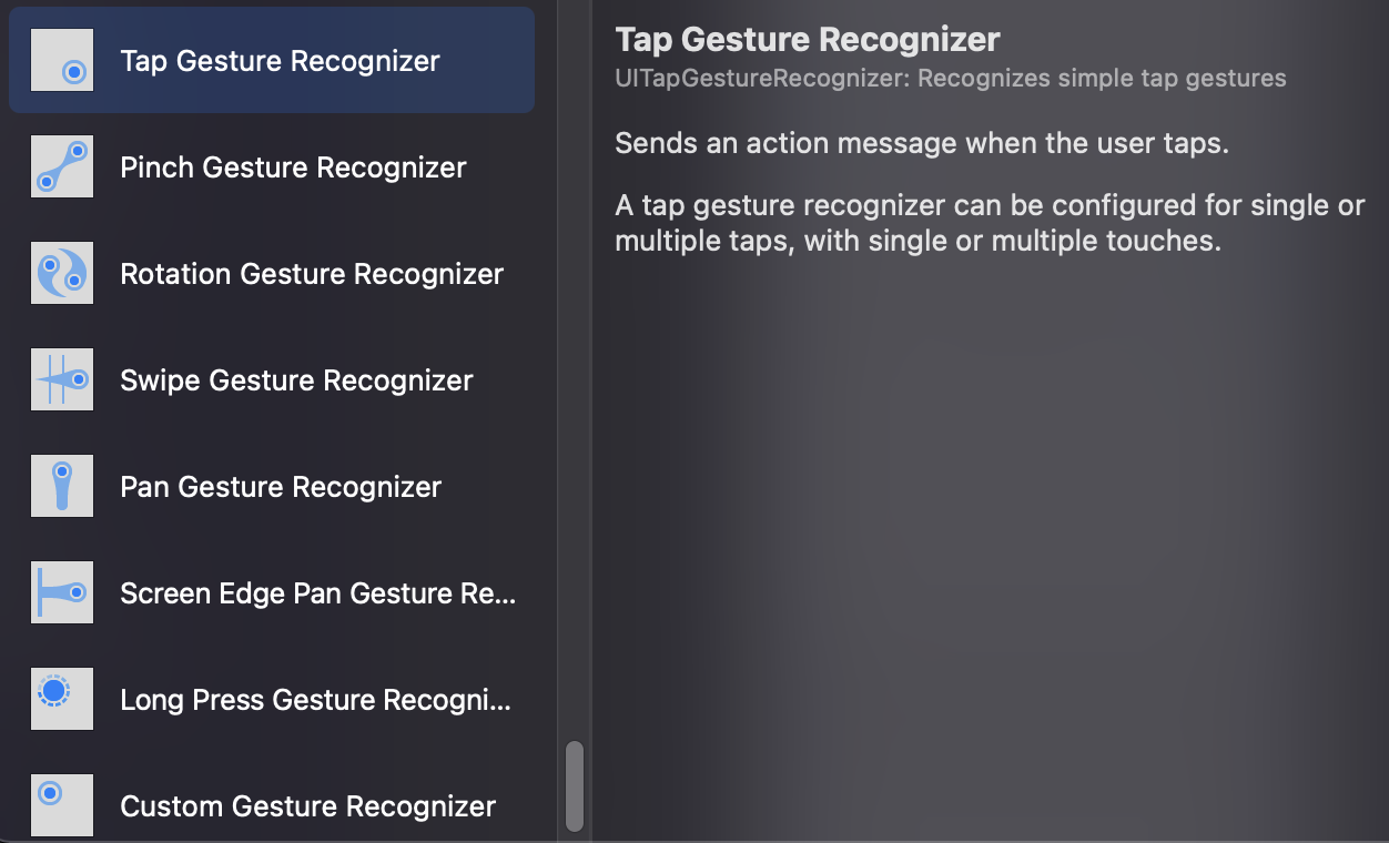 Tap Gesture Recognizer는 한 번 또는 여러 번 탭하도록 구성할 수 있다.