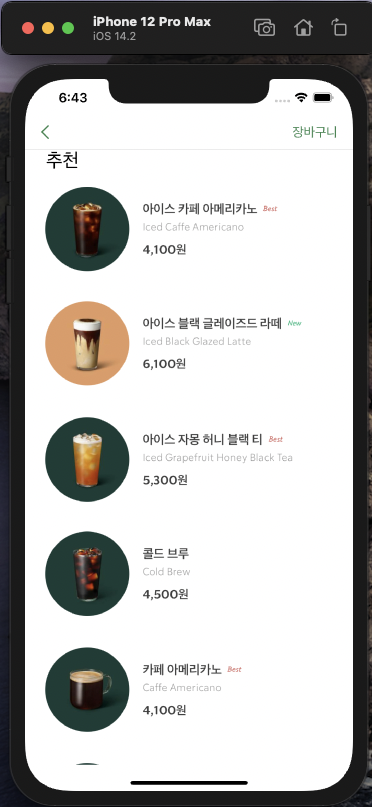 GitHub - SuminPark-developer/2week_starbucks: iOS 2주차 스터디 - 스타벅스 화면(UserDefaults, ScrollView, Navigation B