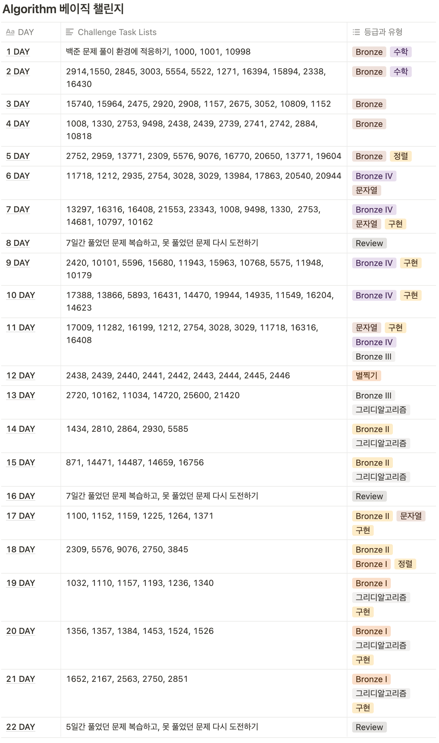 22일동안 정해진 알고리즘 문제를 꾸준히 푸는 챌린지가 있길래 참여했다.
