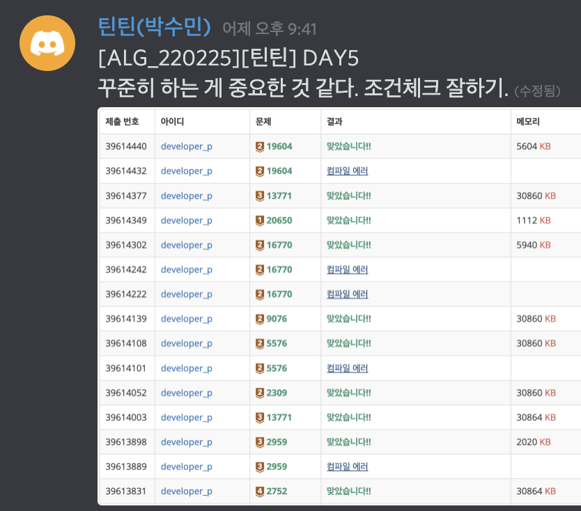 220225 공부 일지 : 꾸준히 하는 게 중요한 것 같다. 조건체크 잘 하기.