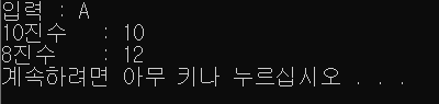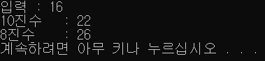printf("10진수\t : %d\n", input);