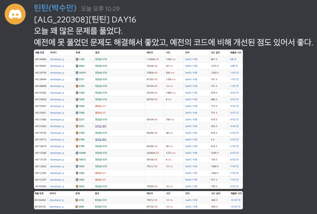 예전에 못 풀었던 문제도 해결해서 좋았고, 예전의 코드에 비해 개선된 점도 있어서 좋다.