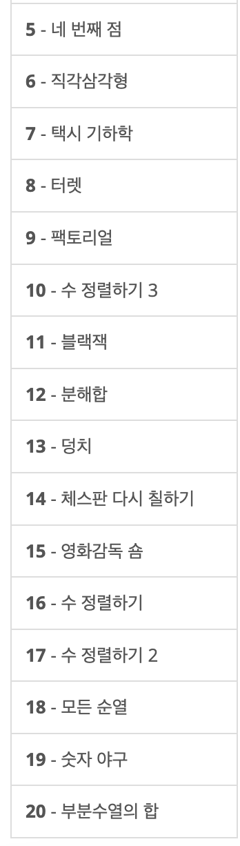 하지만 특별히 못 풀었던 문제는 없어서, 임의로 약 15문제를 푸려고 합니다. (실버2 ~ 브론즈3 예상)