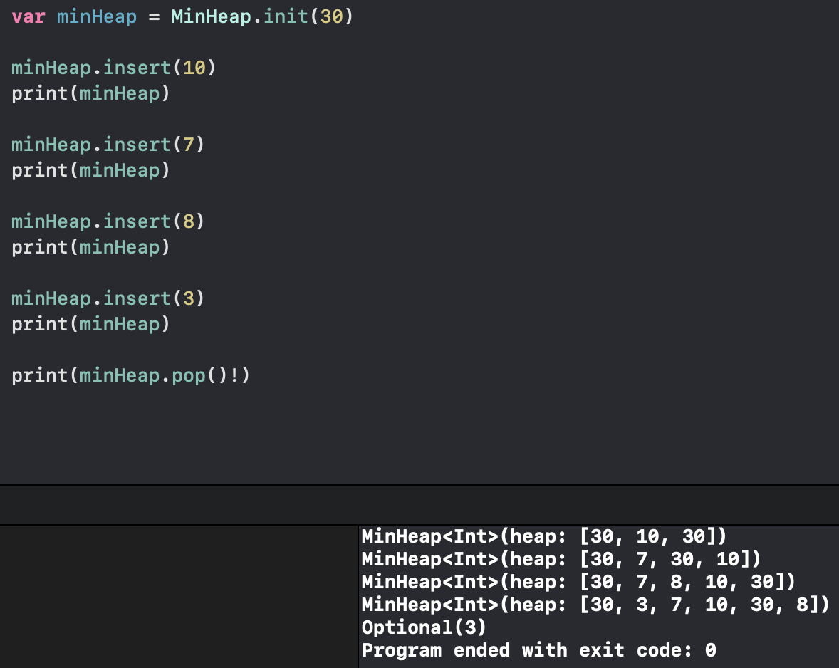 var minHeap = MinHeap.init(30) // 값 있게 초기화