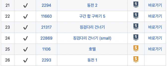 문제 유형 중, DP의 추천문제들을 풀고 있습니다.
