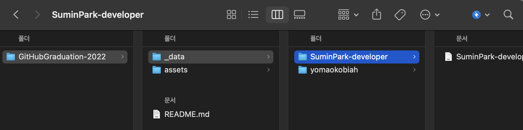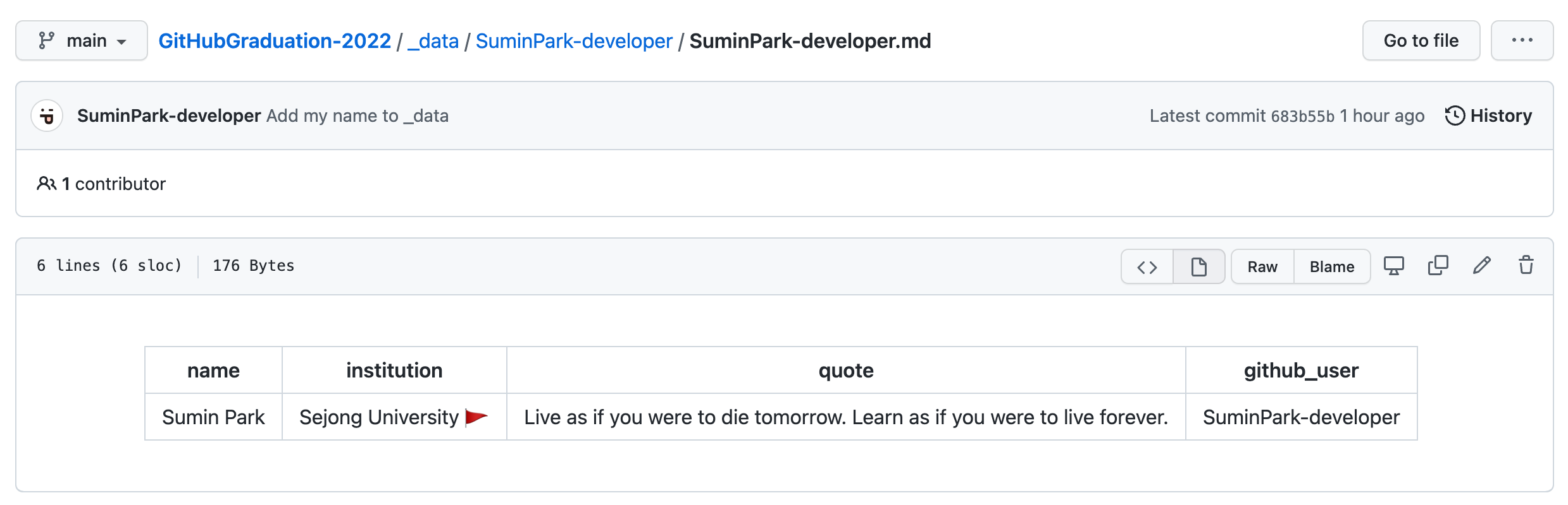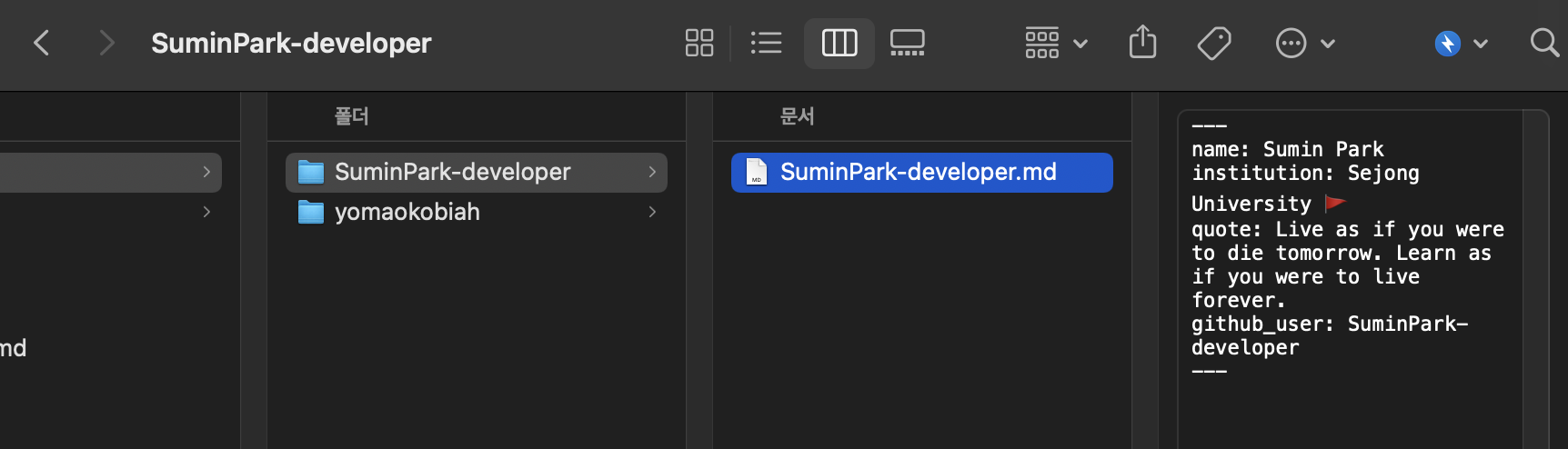 기존에 있는 yomaokobiah의 .md파일을 복사하거나, 위 코드를 복사해서 생성하고 자신의 정보에 맞게 수정하면 된다.