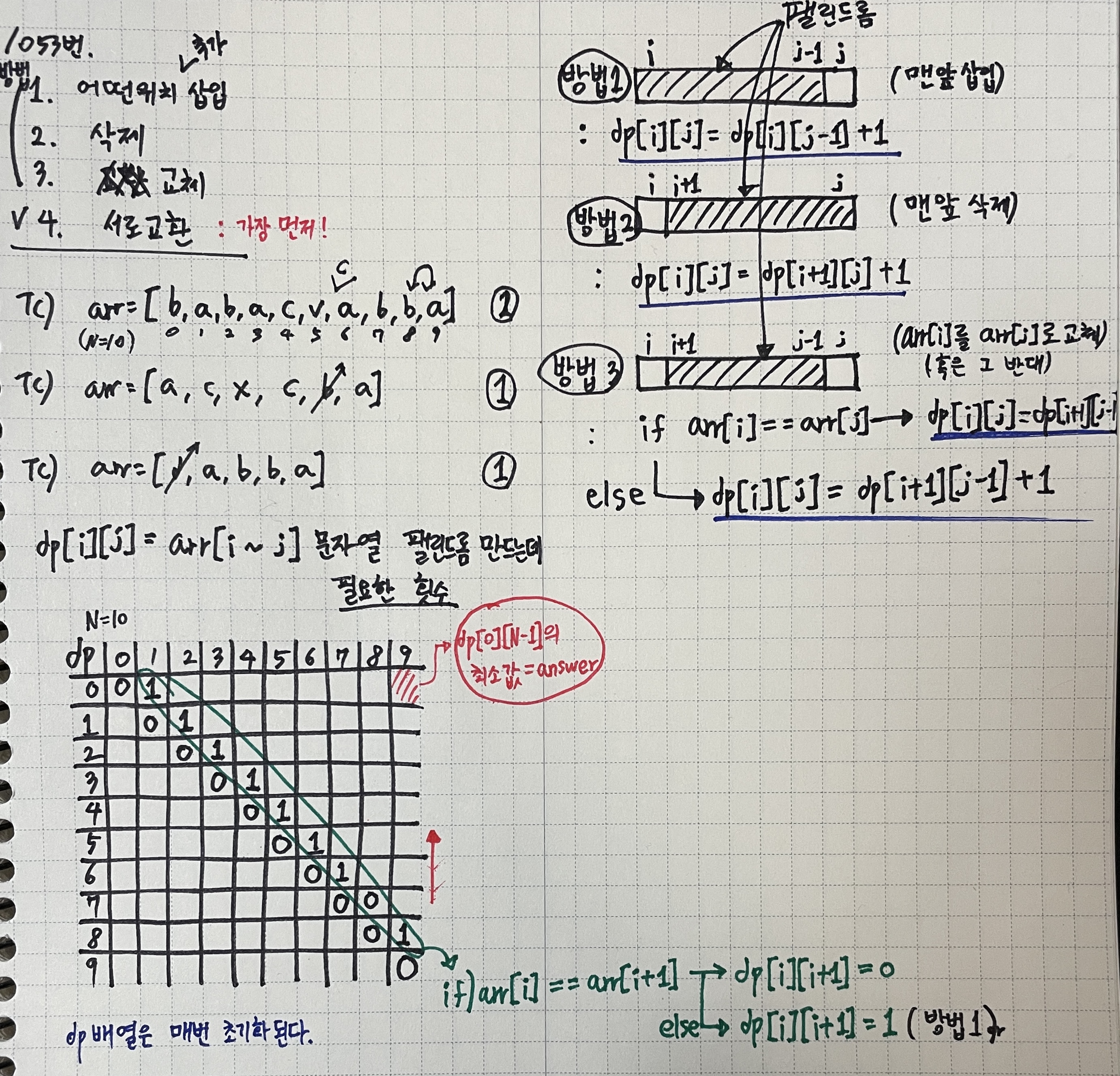 i+1부터 j까진 이미 팰린드롬이고, i부터 j까지 팰린드롬을 만들고 싶은 경우다. 방법2을 써서 맨 앞(i)을 삭제하면 될 것이다.