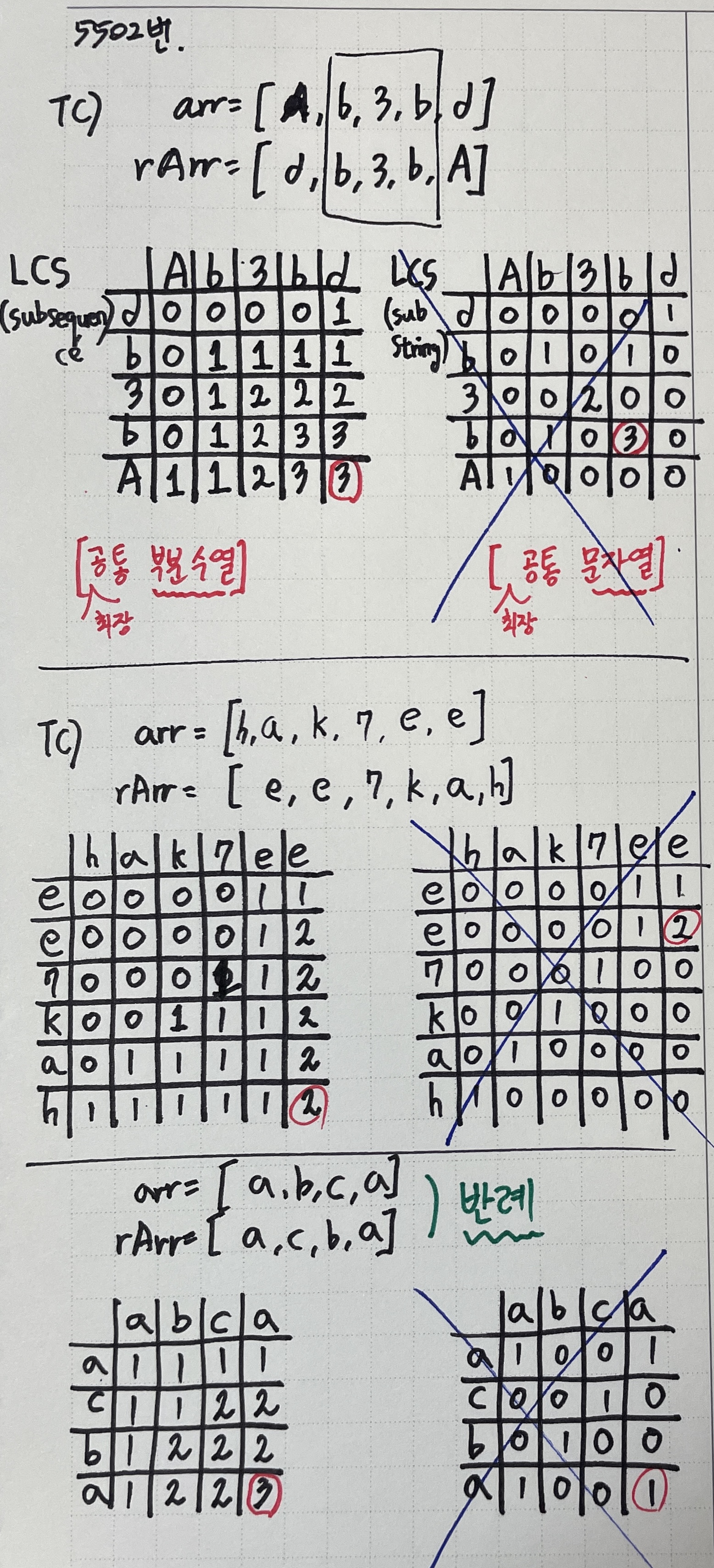 arr과 뒤집은 rArr의 LCS(최장 공통 부분수열)로 풀면 된다.