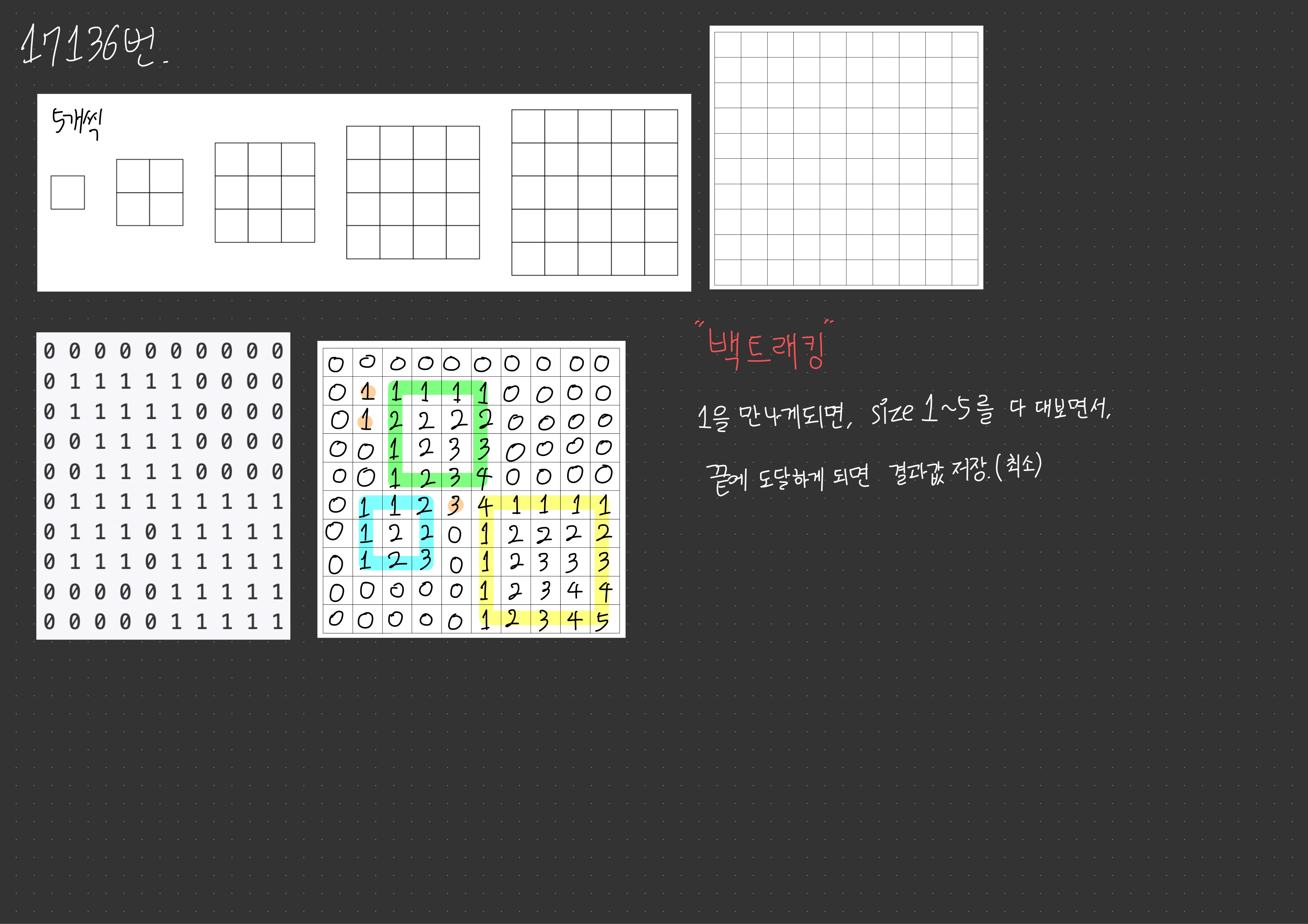 백준 1915번을 활용하면 될 것 같다고 생각하고 고민했는데, 사실 풀이방법과 전혀 상관 없었다...