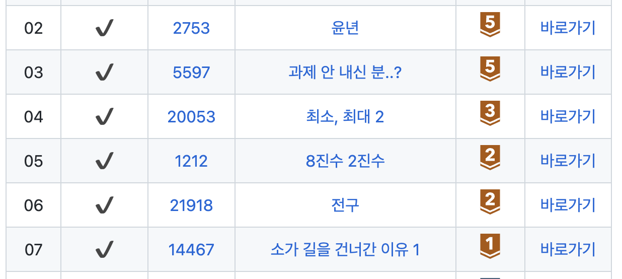아래 깃허브 주소에서 모든 백준 문제풀이를 확인하실 수 있습니다.