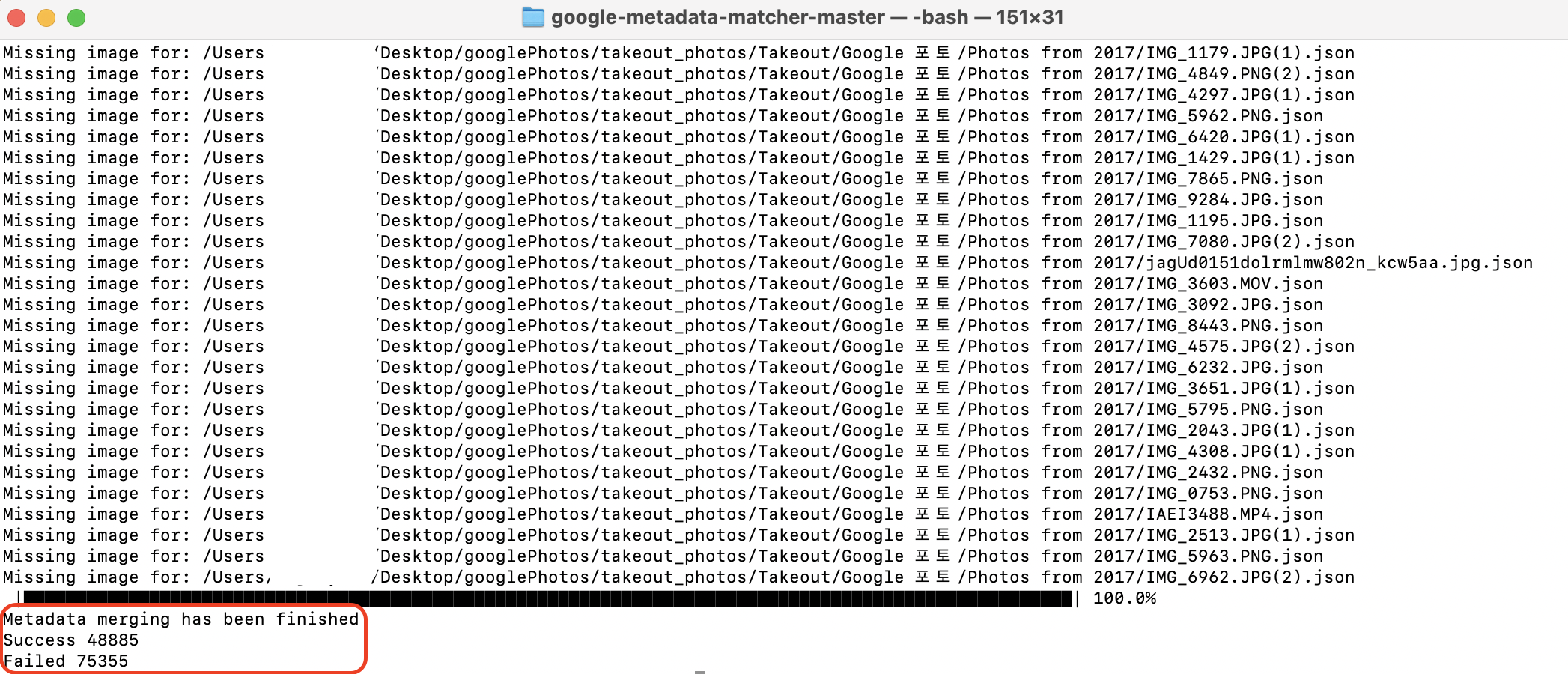 많은 사진 & 영상의 메타데이터를 복구할 수 있었고, 생각보다 더 오랜 시간이 걸리는 작업이었다.
