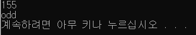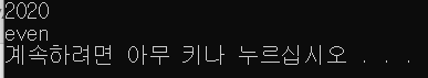 양의 정수 N을 입력 받아 짝수면 “even”, 홀수면 “odd”를 출력하는 프로그램을 작성하시오.