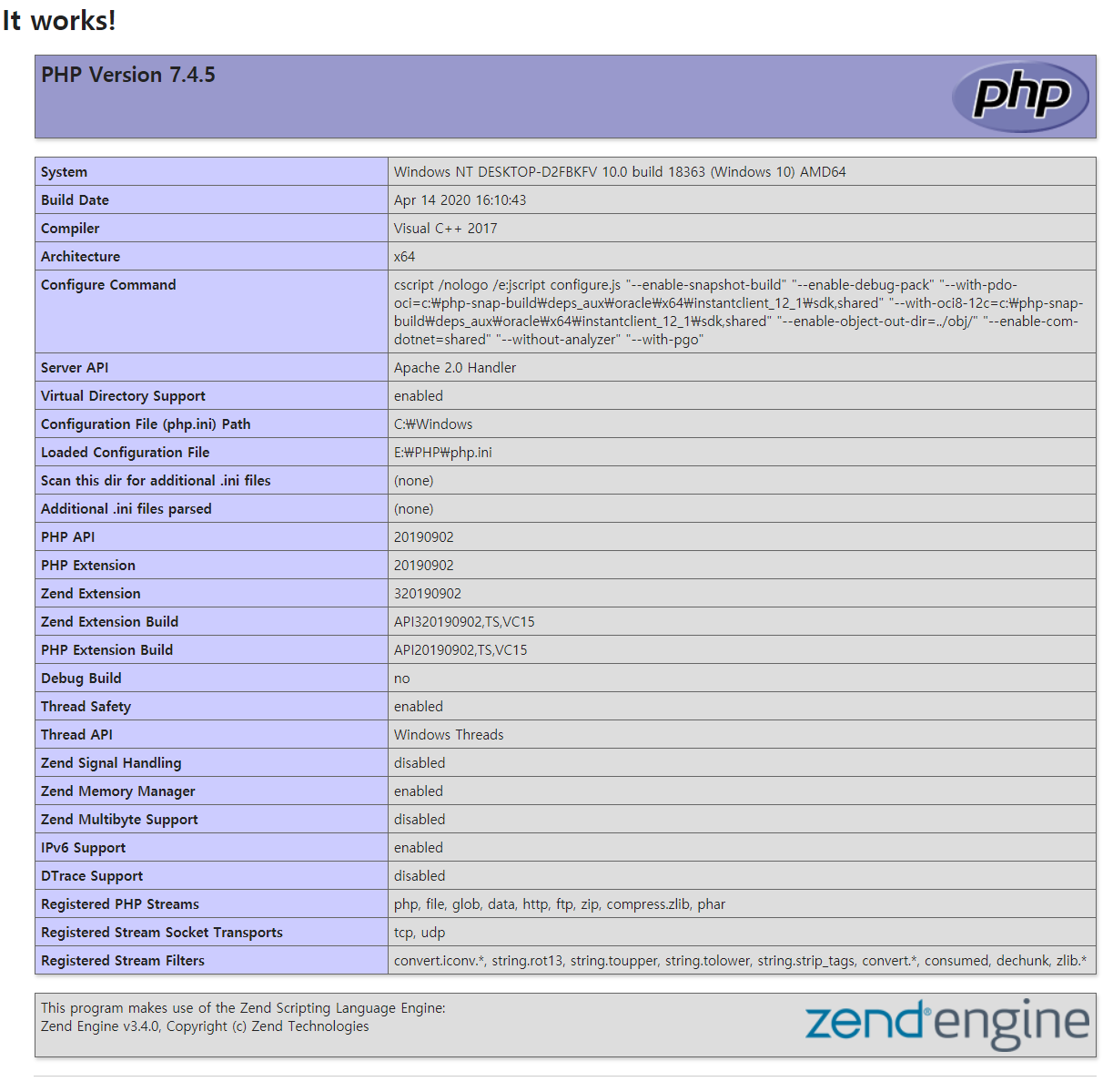 짜잔! php코드(phpinfo함수)가 잘 작동하는 모습을 볼 수 있습니다.
