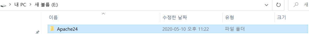 압축을 푼 후 Apache24 폴더를 "E:\apache24" (각자 환경에 맞게)에 둡니다.