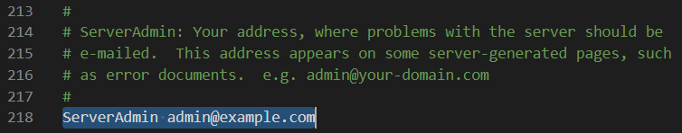 218째줄. 이 웹서버를 관리하는 관리자의 이메일 주소를 입력하면 됩니다.