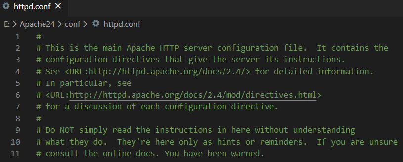 httpd.conf 파일을 VScode에서 열겠습니다.
