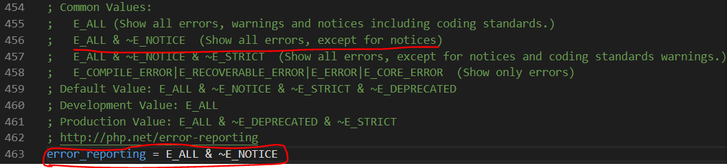 따라서 E_ALL & ~E_NOTICE로 수정해주도록 하겠습니다.