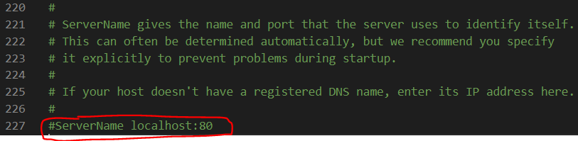 227째줄. 저희는 서버 도메인이 없기 때문에 우선 #제거후, localhost로 바꾸겠습니다.