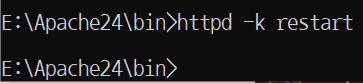 cmd창에 httpd -k restart 입력합니다.