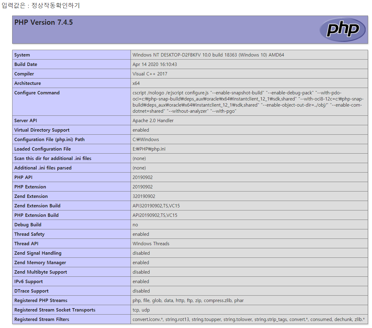 (사실 위 코드에서 phpinfo(); 만 있으면 됩니다.)