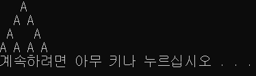 문자 A로 이루어진 삼각형 모양을 출력하는 프로그램을 작성하시오. - 비슷한 모양이 나오도록 공백 출력을 적절히 이용