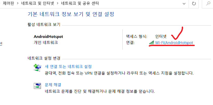 3. 네트워크 및 공유센터에서 활성 네트워크를 클릭합니다.
