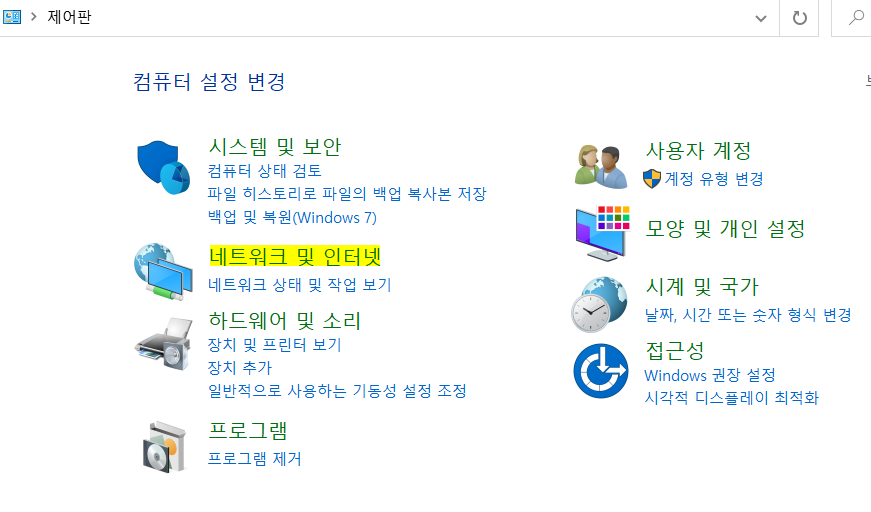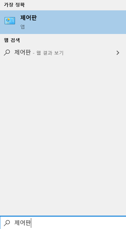 1. 제어판 들어가기 - 왼쪽 하단에 제어판을 검색합니다.