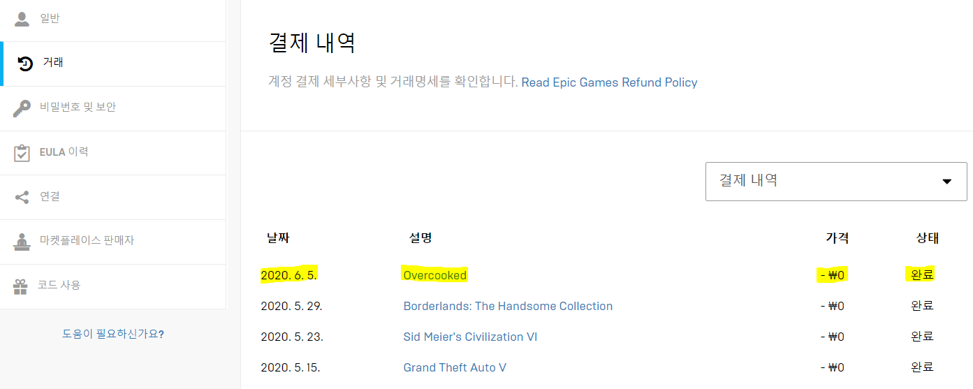 5. 잘 구매됐는지 확인하기 위해, 구매 기록을 확인해 봅시다.