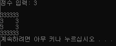 scanf를 이용하여 사용자에게 숫자 2~9중 하나의 값을 입력 받고, 입력 받은 값으로 이루어 진 사각형을 출력하라.
