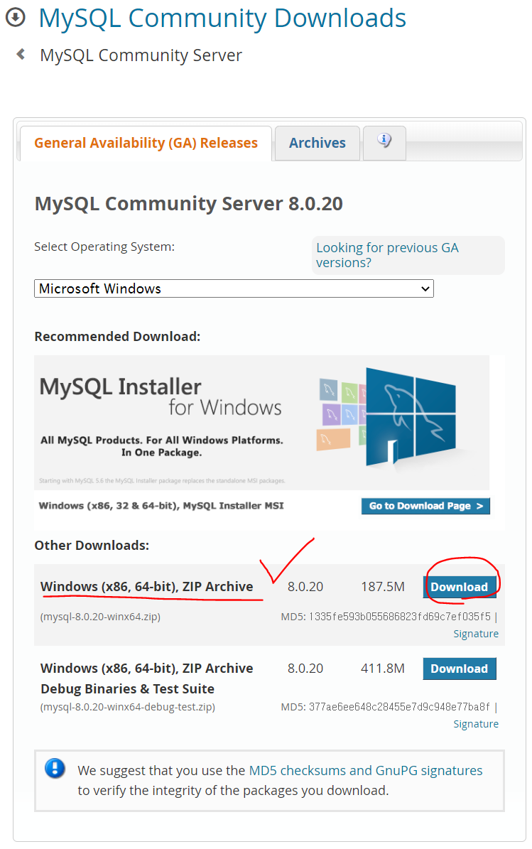 3. Windows (x86, 64-bit), ZIP Archive 8.0.20 다운로드를 클릭합니다.