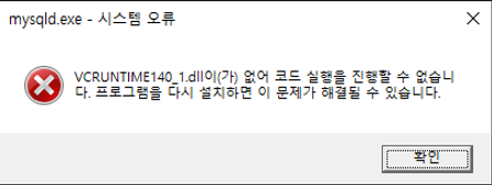 VCRUNTIME140_1.dll 오류 초간단 해결 방법 (mysqld.exe - 시스템 오류)