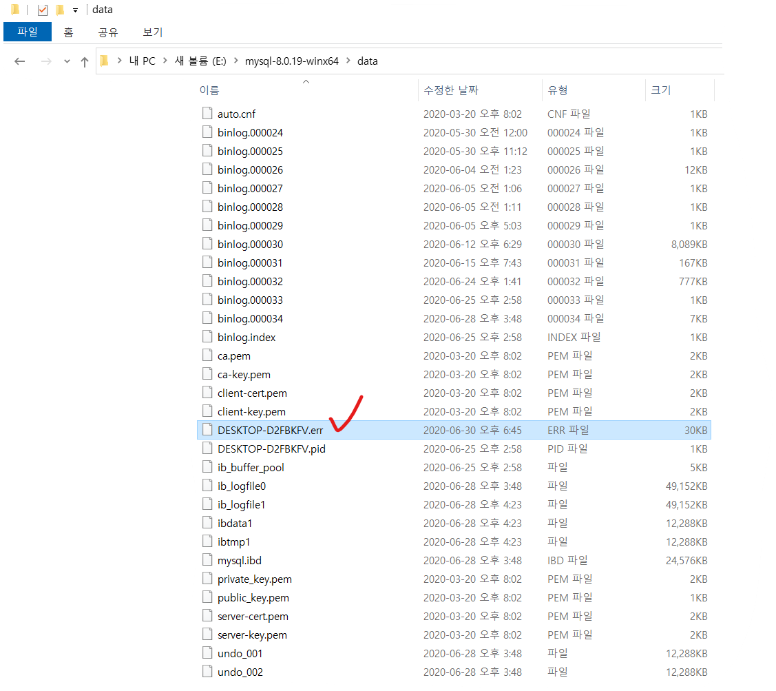 10. 설치가 끝났다면, data 폴더에 "컴퓨터이름.err"이란 파일이 있습니다.